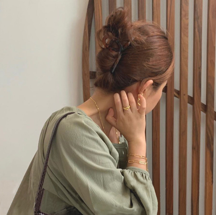 [SG | Smooth & Tight] 11cm Vintage Elegant Metal & Acetate Hair Claw, Half updo, Gold Metallic hair grasping hair clamp hair accessories for women