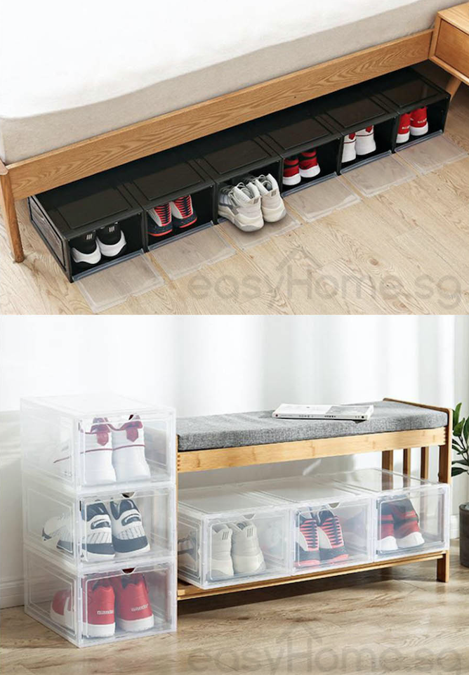 (Bundle Set) AJ Shoe Box / Storage Rack Shelf Organizer (Front Or Side Lid Opening)