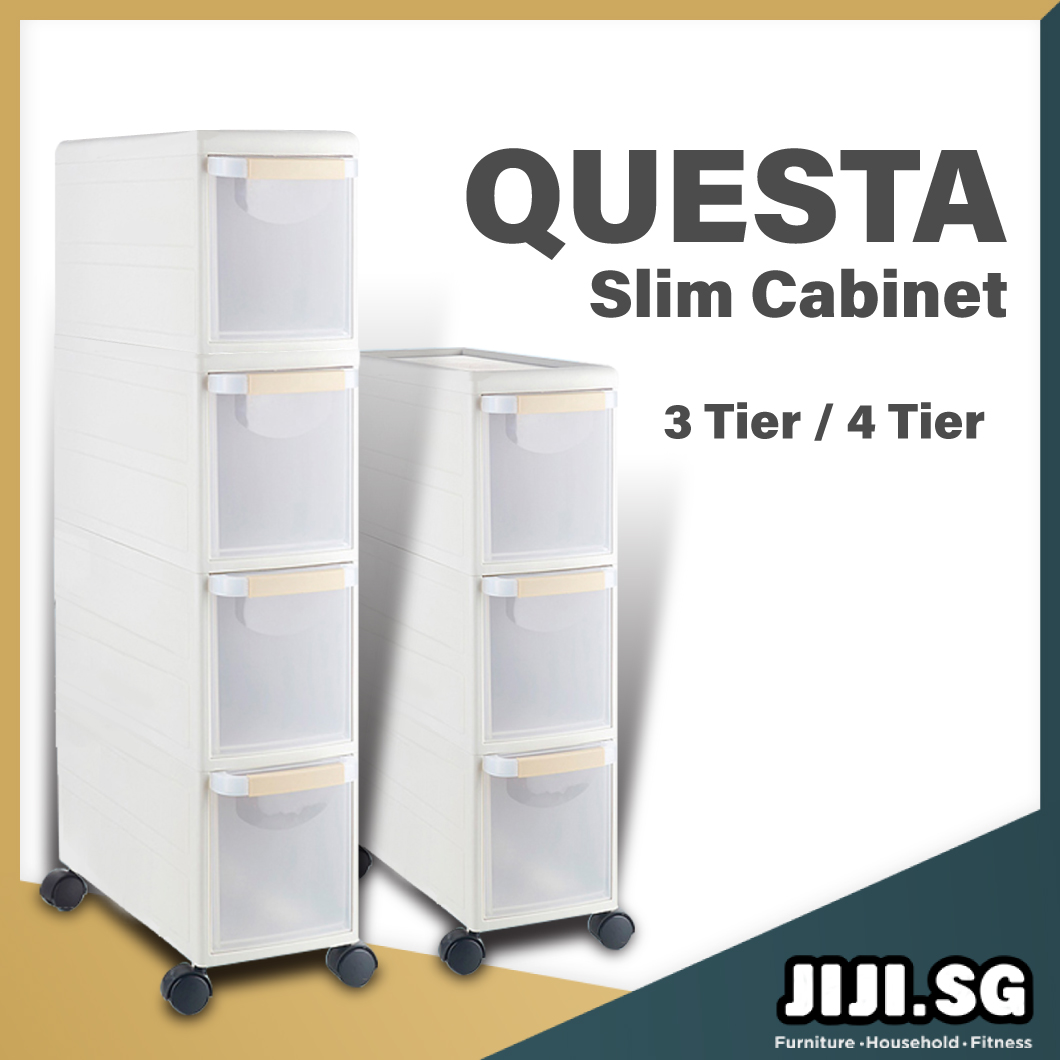 (JIJI.SG) QUESTA Slim Cabinet - 3 Tier - 4 Tier - Organizer - Kitchen - Storage - Drawer - PP Plastic / jt