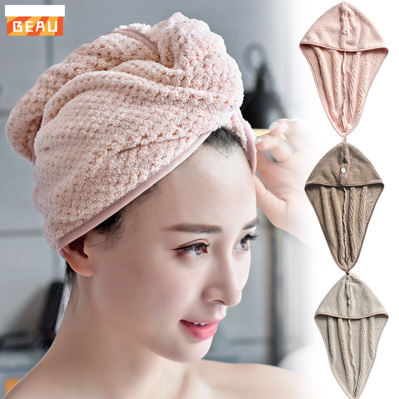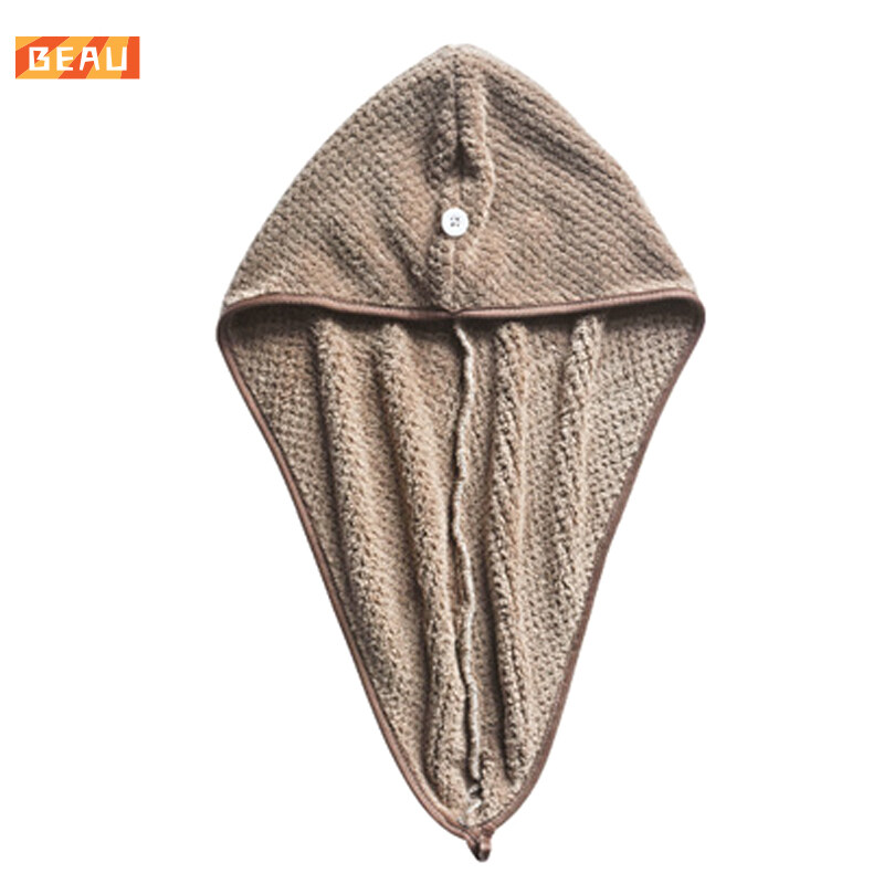 BEAU# Micro Fiber Hair Towel Hair Drying Towels Quick Dry Hat Cap Twist Head Towel with Button