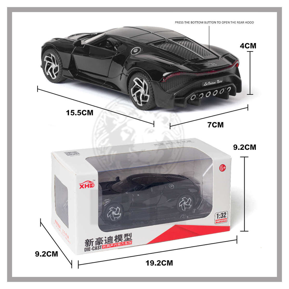 LEO 1:32 Bugatti la voiture noiro Diecast Metal Car Model Toy Cars For Boy Children Toys Hobbies Vehicle Kids Gift