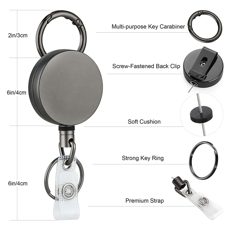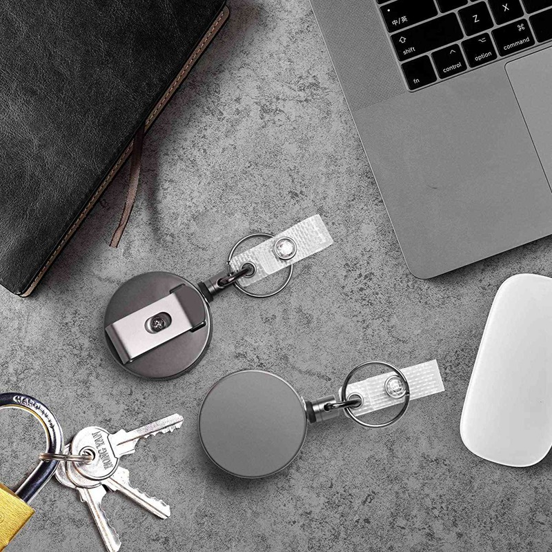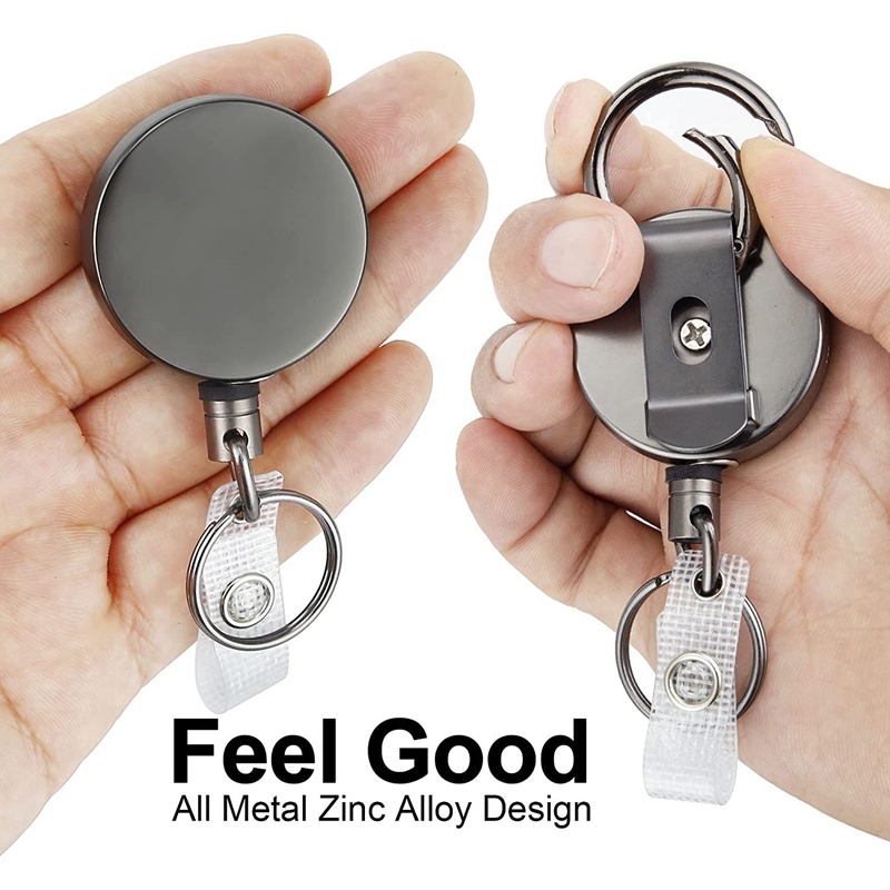 2 Pack Heavy Duty Retractable Badge Holder Reels, Metal ID Badge Holder with Belt Clip Key Ring for Name Card Keychain