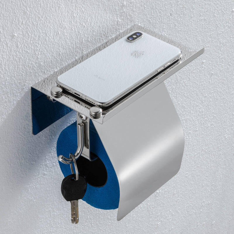 • Multi-functional tissue roll holder with shelf. It is not just a bathroom hardware paper hanger, and it is also a wall-mounted bath accessory with storage shelf for holding phones and other small items.