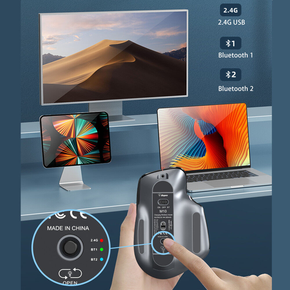 2) dual mode: the mouse support 2.4G wireless connection and bluetooth, it can work with the provided USB receiver, also it can connect via bluetooth, can connect up to 3 devices via 2.4G USB receiver and bluetooth. the DPI value is up to 4000. It is silent clicking.