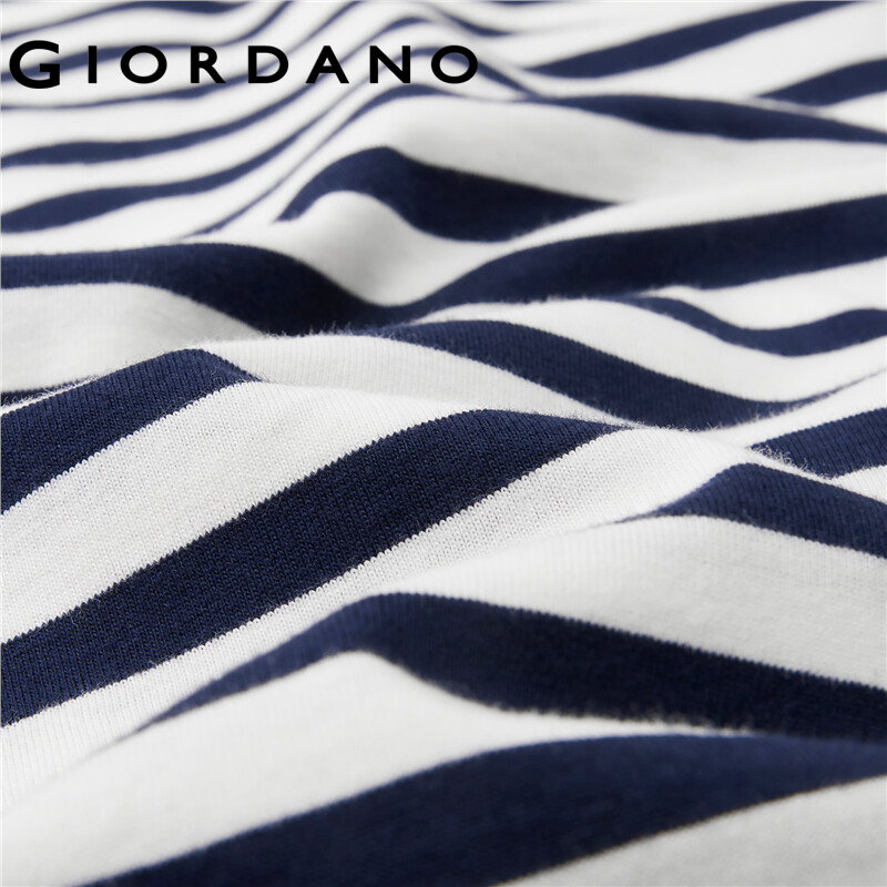GIORDANO Women T-Shirts Contrast Color Stripe 100% Cotton Casual T-Shirts Long Raglan Sleeve Square Neck Comfy T-Shirts 13322770