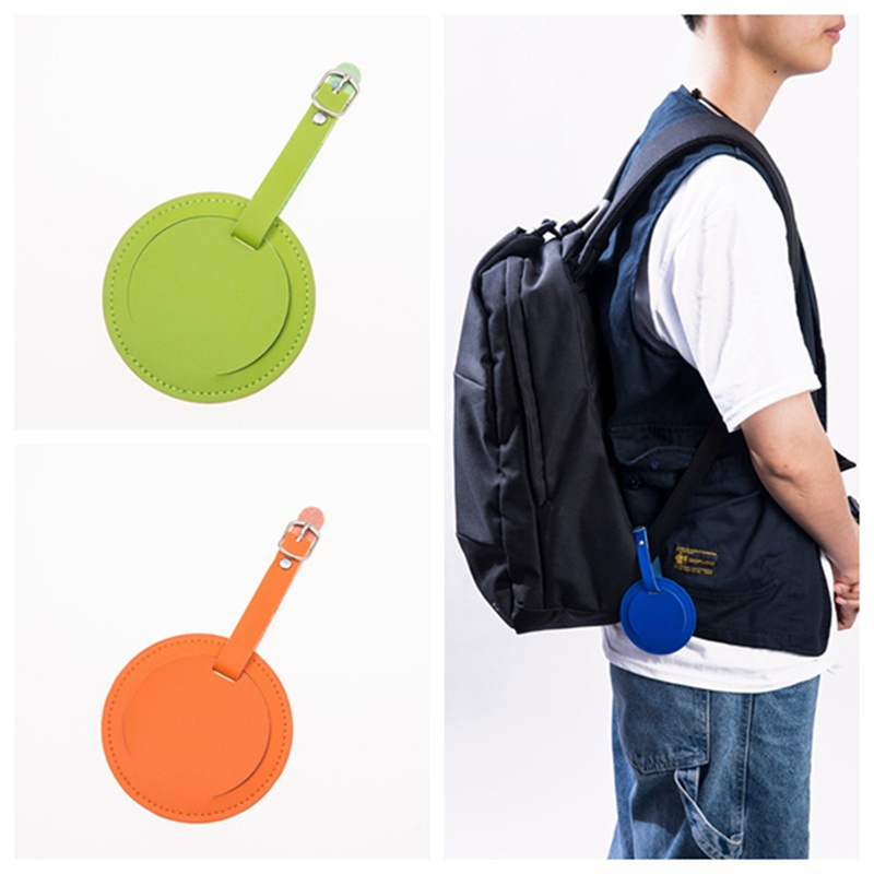 MH Fashion Solid Color PU Leather Round Luggage Tag Travel Accessories Name ID Address Label