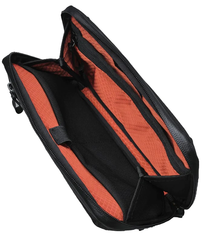 ?????????????? • Transforms into a sling bag (strap included) • Accordion-style opening • Weatherproof fabrics • X-Pac® VX42 Black • Fits a Kindle e-reader • 9 thoughtfully designed pockets across 2 compartments • Blood orange honeycomb 200D Ripstop Nylon • YKK waterproof zippers • Rear grab handle • Pen Slot ?????????? • 230mm (9”) x 135mm (5.3”) x 50mm (2”) • Weight: 200g