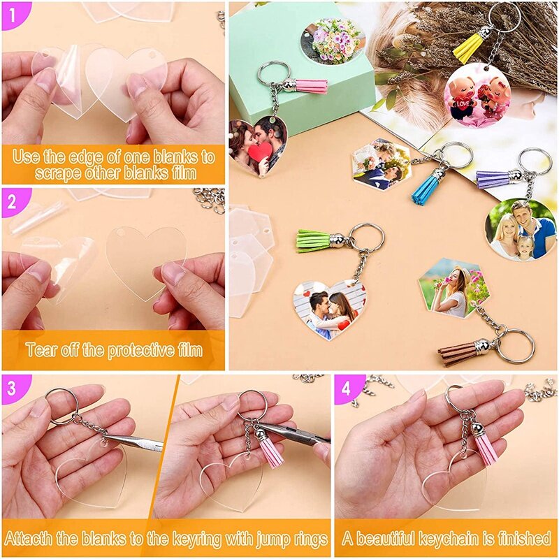 120 PCS Acrylic Keychains Blanks Bulk: Sufficient quantity and different shape, you can share with your family and friends for DIY Craft home Ornament.The tassels are super cute and the acrylic is crystal clear!