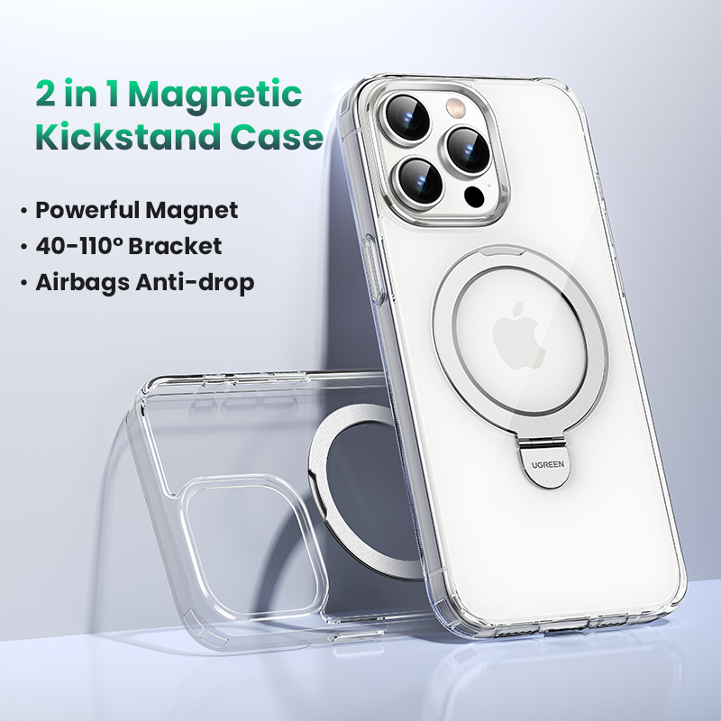 UGREEN 1Pc Magnetic Ring Stand Case for iPhone 15 Pro Max 15 Plus Magnetic Kickstand Case