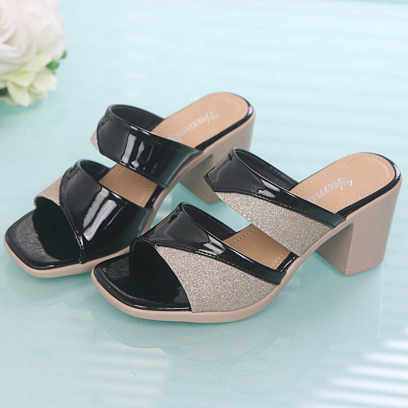 2022 New Summer Lazy Half Slippers Women's Shoes Sandals Peep Toe Chunky Heel Versatile Fashion Slippers Outer Wear Trendy Sandals