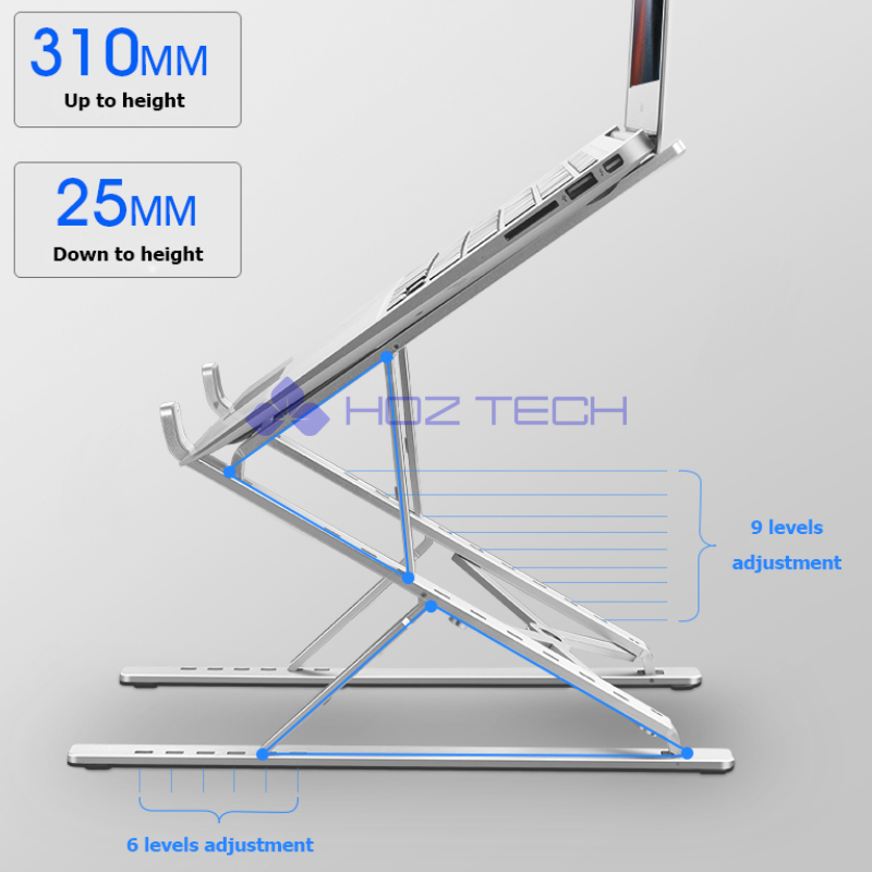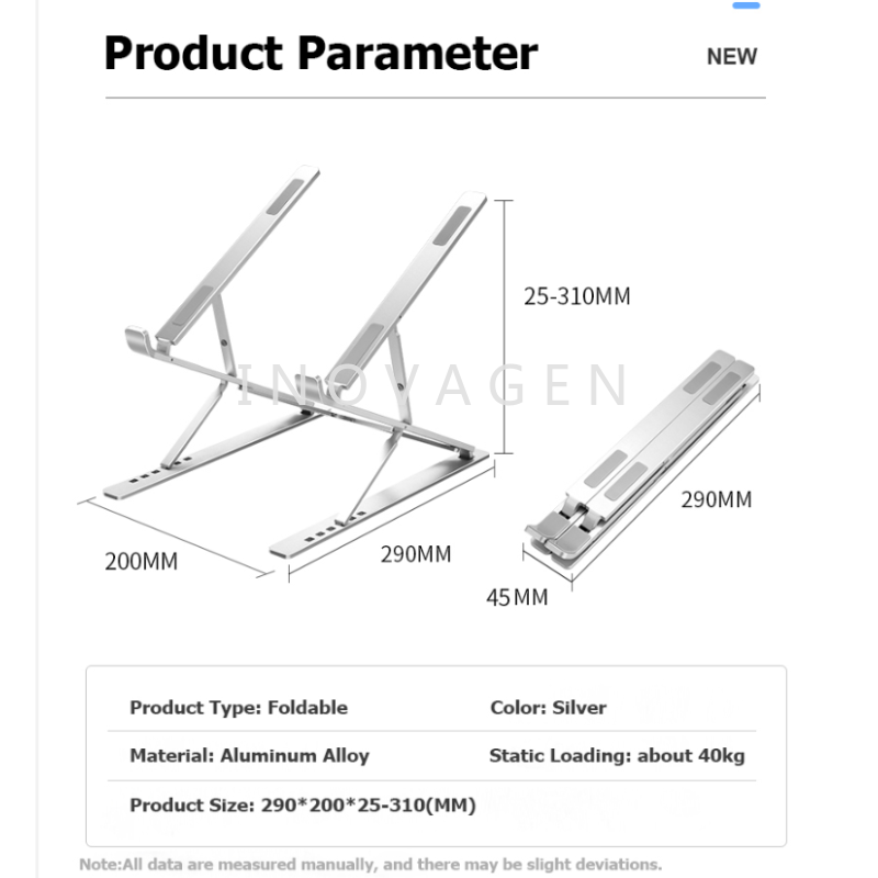 INOVAGEN Up to 310mm Double Height Adjustable Aluminum alloy laptop stand Portable Foldable Cooling design up to 17.3inch Laptop Tablet Stand
