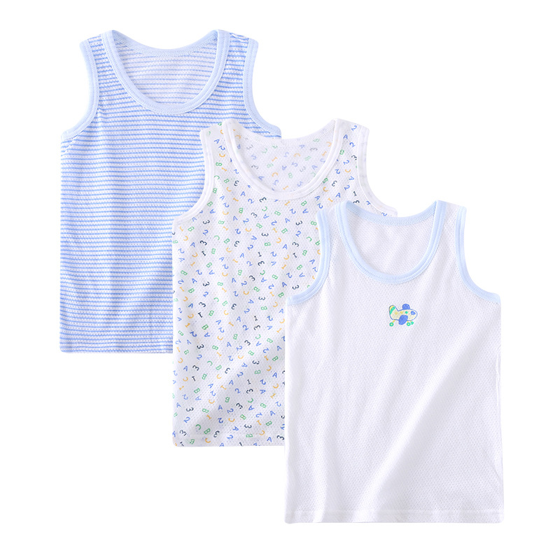 3 Pieces/Lot Summer Children Boys Cotton Fashion Mesh Hollow Out Thin Vests Tank Top Tees