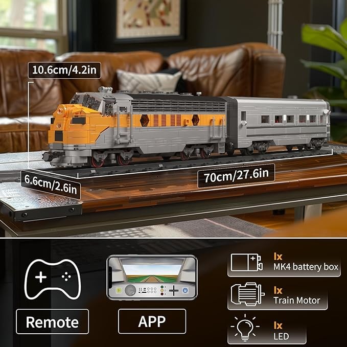 • 【Realistic Details】True to the original train, this large train model is packed with realistic details and the carriages are removable.Package with motor, Bluetooth lithium batteries, USB cable, remote control. This building block toy provide you a more authentic experience.